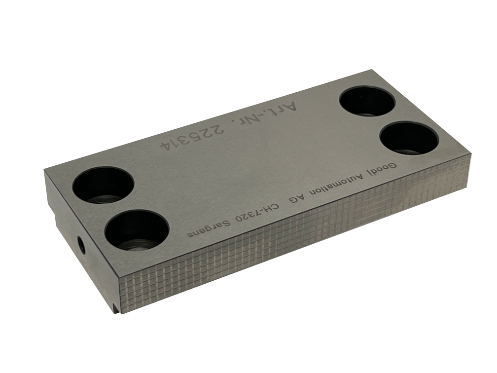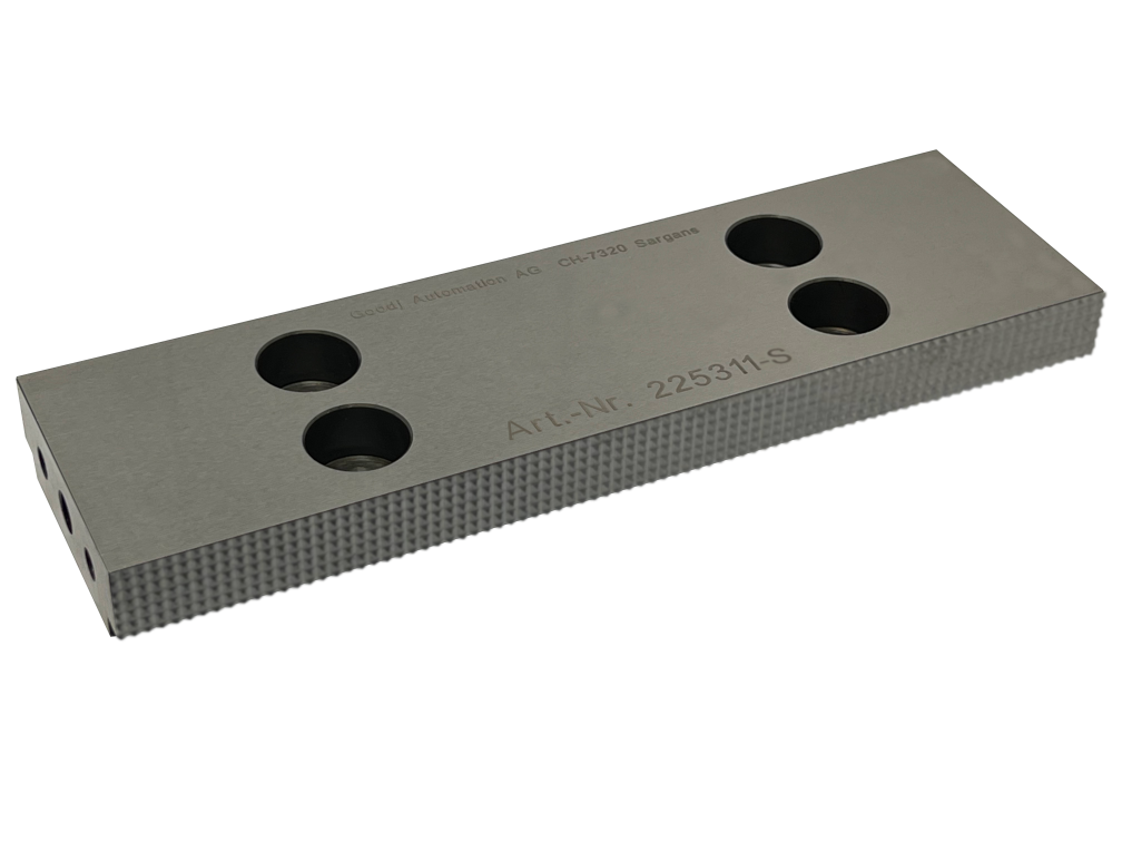 Einseitig glatte, einseitig geriffelte Aufsatzbacken der GOODJ 125 Serie. Dank der 2 verschiedenen Strukturen auf den Spannflächen vielseitig einsetzbar.