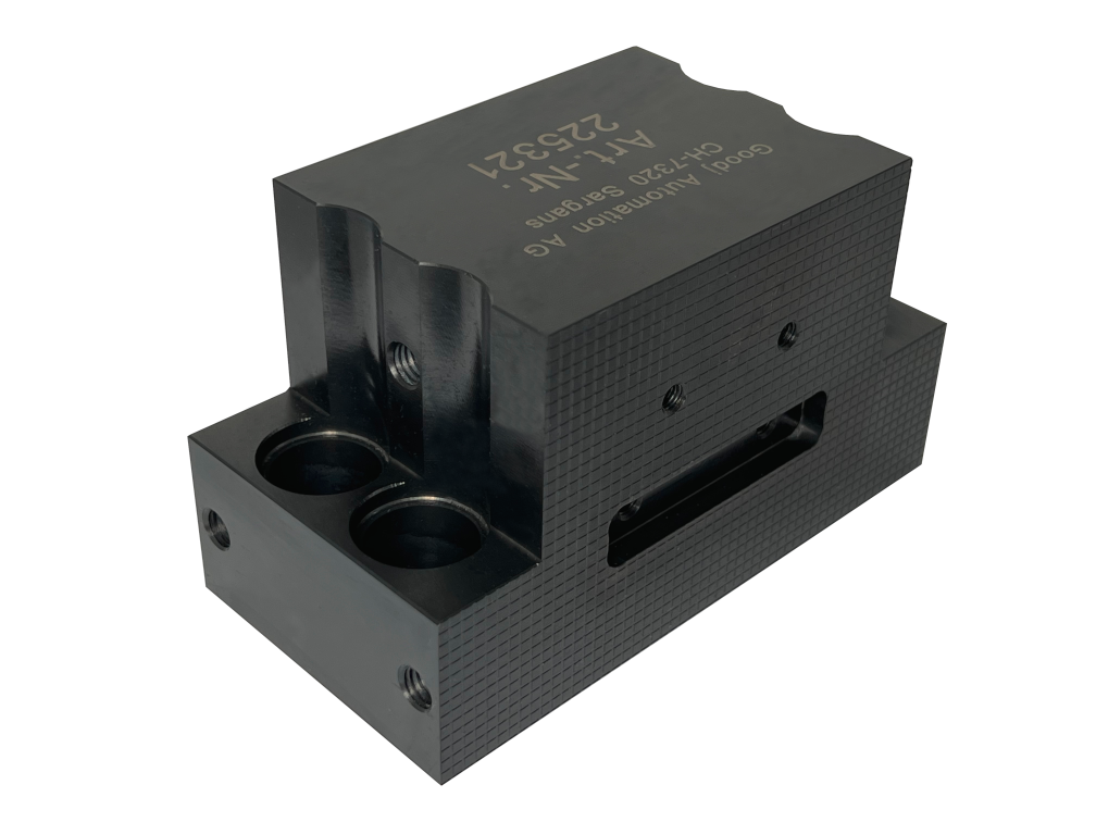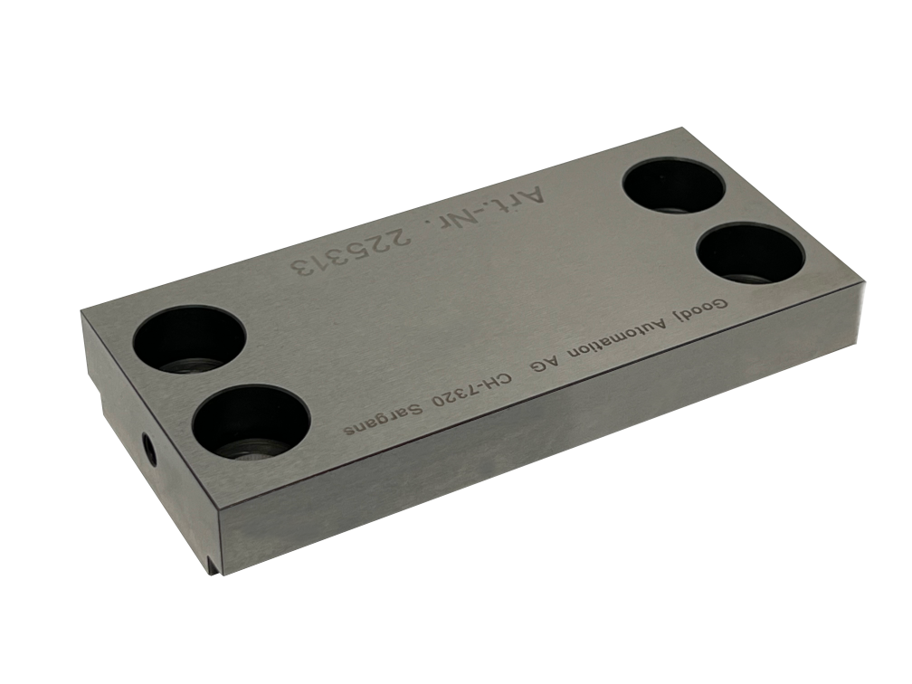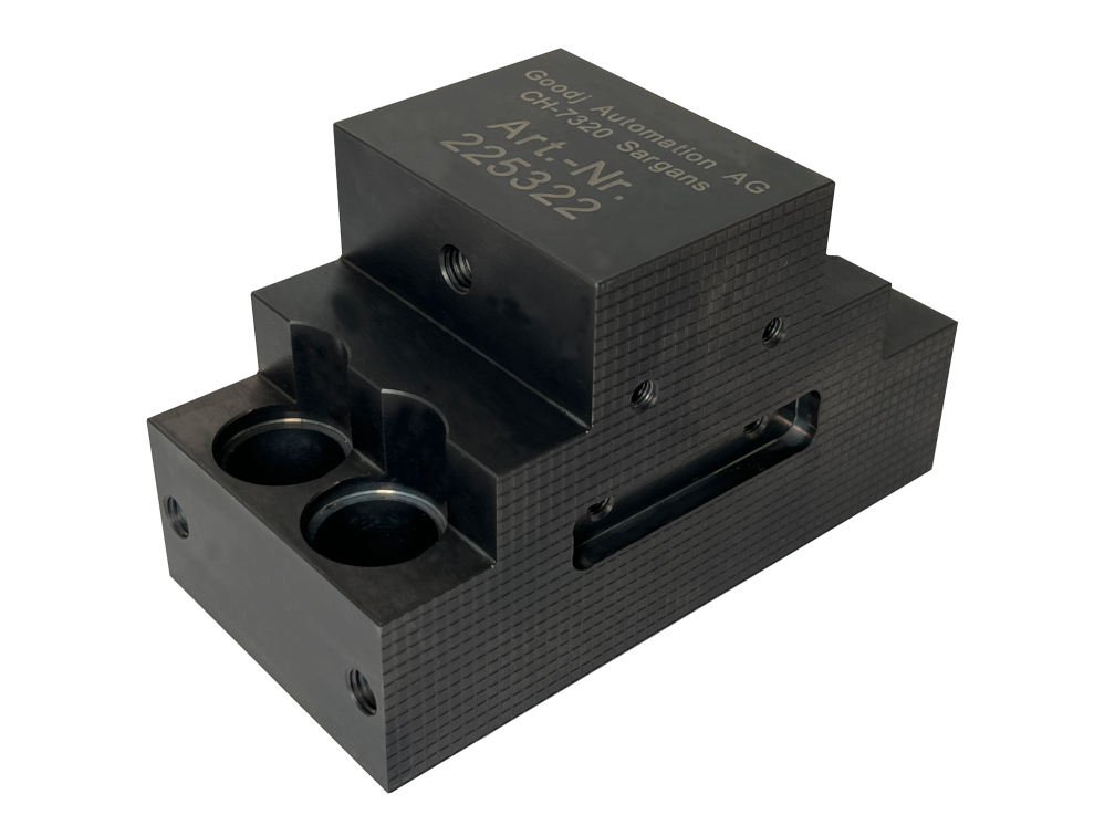 Einseitig geriffelte, einseitig glatte 5-Achsbacke für die 125er Reihe. Universal einsetzbar erhöht die 5-Achsbacke die Zugänglichkeit bei der 5-Achsbearbeitung.